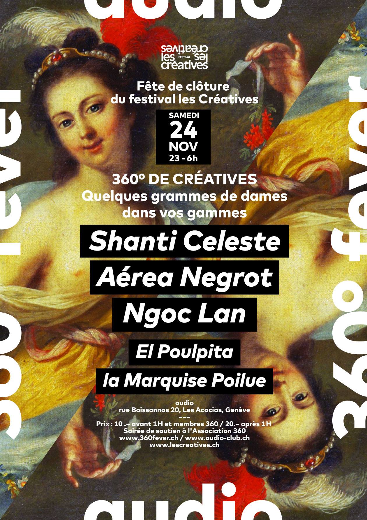 Soirée 360° fever: 360° de Créatives – Quelques grammes de dames dans vos gammes 24 novembre 2018 par Chatty Carte non disponible Date Date(s) - 24.11.2018-25.11.201823h00-6h00 Lieu Catégorie(s) Pas de Catégories