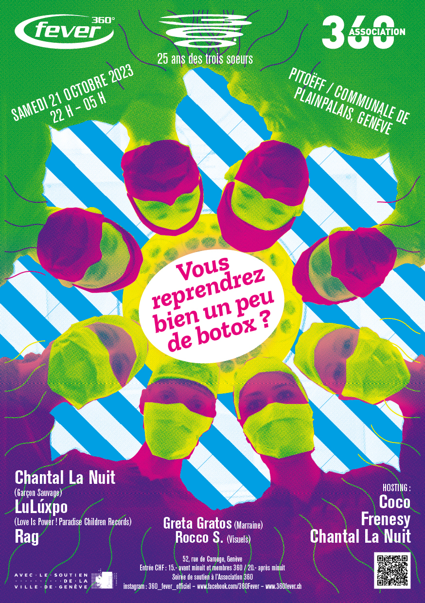 Soirée 360° Fever pour les 25 ans des trois soeurs: Vous reprendrez bien un peu de botox? 21 octobre 2023 par Chatty On fête les 25 ans de 360° Fever, du magazine 360° et de l’Association 360 Carte non disponible Date Date(s) - 21.10.2023-22.10.202322h00-5h00 Lieu Catégorie(s) Pas de Catégories
