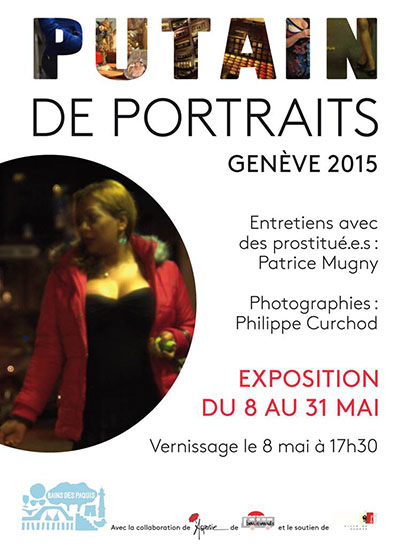 Entre deux discussions et trois chips, nous vous proposerons de parcourir ensemble, le long de la jetée, l’exposition « Putain de portraits », une série de photographies de travailleuses et de travailleurs du sexe, tirées d’un livre de Patrice Mugny et Philippe Curchod. Ce projet a été réalisé en collaboration avec l’association Aspasie et le projet Bus Boulevards qui œuvrent dans le domaine du soutien et de la prévention pour cette population.