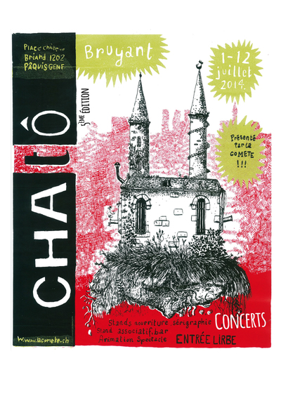 Pour cette première soirée « Genf Alternativ », découvrons ensemble le festival Chatô Bruyant mardi 8 juillet ! Chatô Bruyant, c’est deux semaines de festival en plein air, gratuit et participatif, au coeur des Pâquis, du 1 au 12 Juillet. Des concerts, du théâtre, de la radio, des ateliers, le bar, le free shop, des associations, du miam et… toi ? Plus d’informations: http://www.darksite.ch/lacomete/?page_id=2583