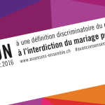 Le 28 février, nous voterons sur la dangereuse initiative «Pour le couple et la famille – Non à la pénalisation du mariage» du PDC qui, sous couvert d’égalité fiscale, vise à inscrire dans notre Constitution le mariage comme étant l’union durable entre un homme et une femme, excluant, s’il était voté, ainsi pour longtemps l’ouverture du mariage civil pour les couples de même … [Lire plus...] à proposActions contre l’initiative discriminatoire du PDC à Genève