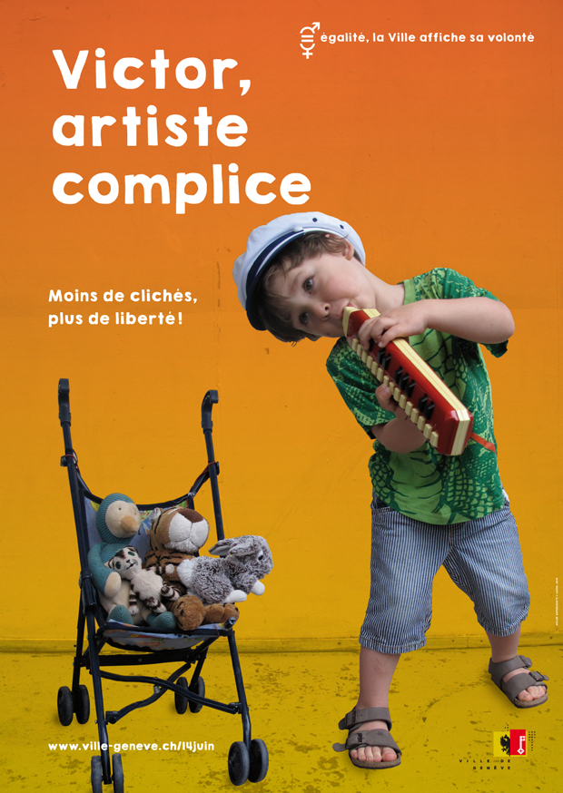 En marge du 14 juin, la Ville de Genève lance chaque année une campagne de sensibilisation à l’égalité. La Campagne «égalité, la Ville affiche sa volonté» 2015 s’attaque ainsi aux stéréotypes de genre dès l’enfance avec une campagne « Moins de clichés, plus de libertés! »