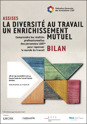 Près de 300 participant.e.s des milieux professionnels des PME et multinationales, des institutions publiques, des organisations internationales et des syndicats ont pris part, les 28 et 29 novembre 2014, aux assises «La diversité au travail: un enrichissement mutuel – Comprendre les réalités professionnelles des personnes LGBT pour repenser le monde du travail». Ces deux journées, organisées par la Fédération genevoise des associations LGBT, aux côtés de l’association 360, avaient pour buts de mettre en évidence les difficultés et les discriminations auxquelles les personnes LGBT sont confrontées dans le monde du travail et de réunir les acteurs et actrices du monde professionnel et économique pour dégager des pistes d’actions et des solutions concrètes.