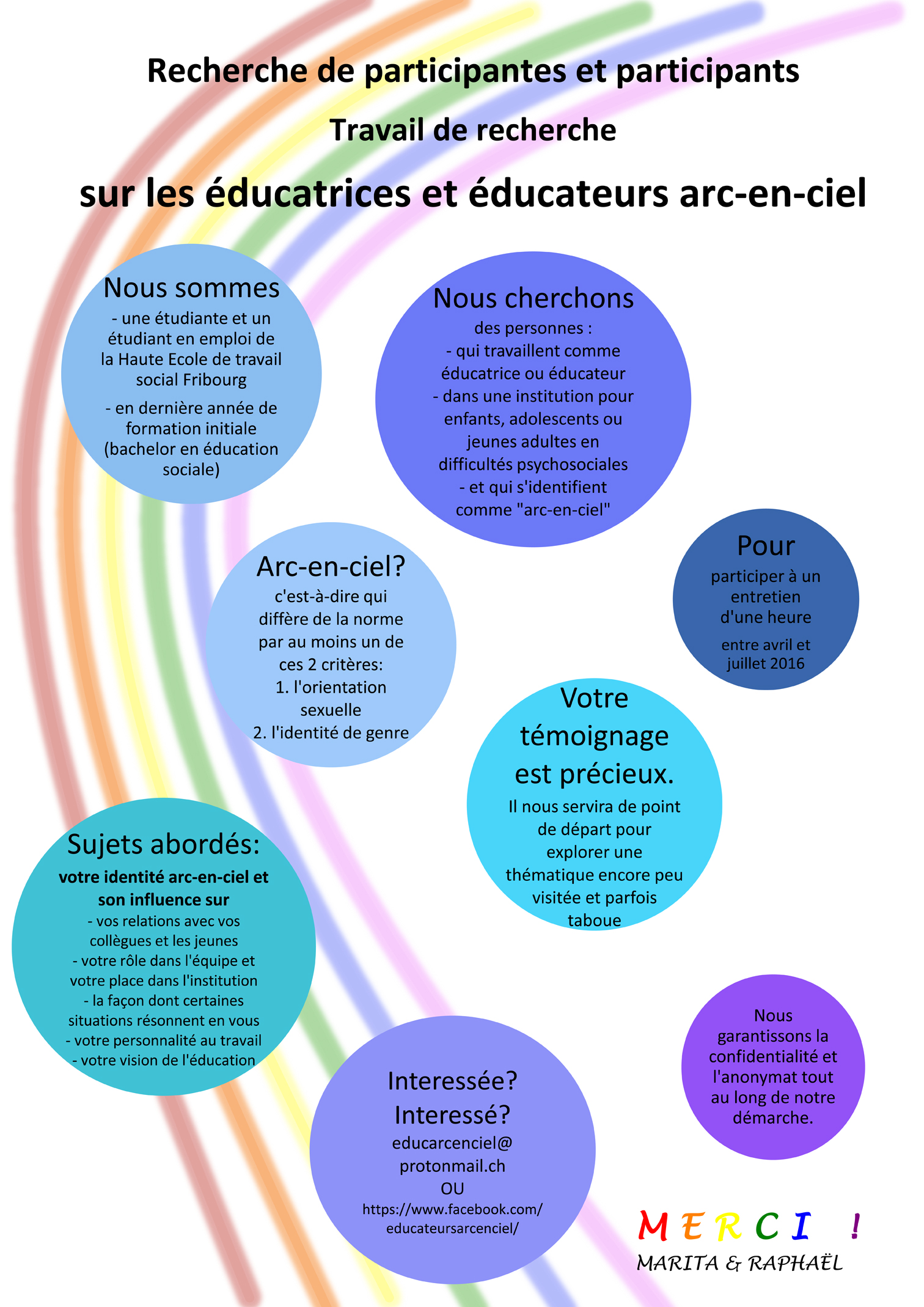 Recherche de participantes et participants pour un travail de recherche sur les éducatrices et éducateurs arc-en-ciel 21 février 2016 par Chatty