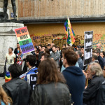 Nous sommes aussi réunis ce soir pour manifester notre solidarité avec nos amis gays, lesbiennes, bisexuels et trans musulmans et qui se revendiquent de confession musulmane et qui eux aussi sont victimes d’homophobie et de transphobie étatique, enfermés ou exécutés en toute légalité comme en Arabie saoudite, en Iran, en Syrie ou en Iraq.