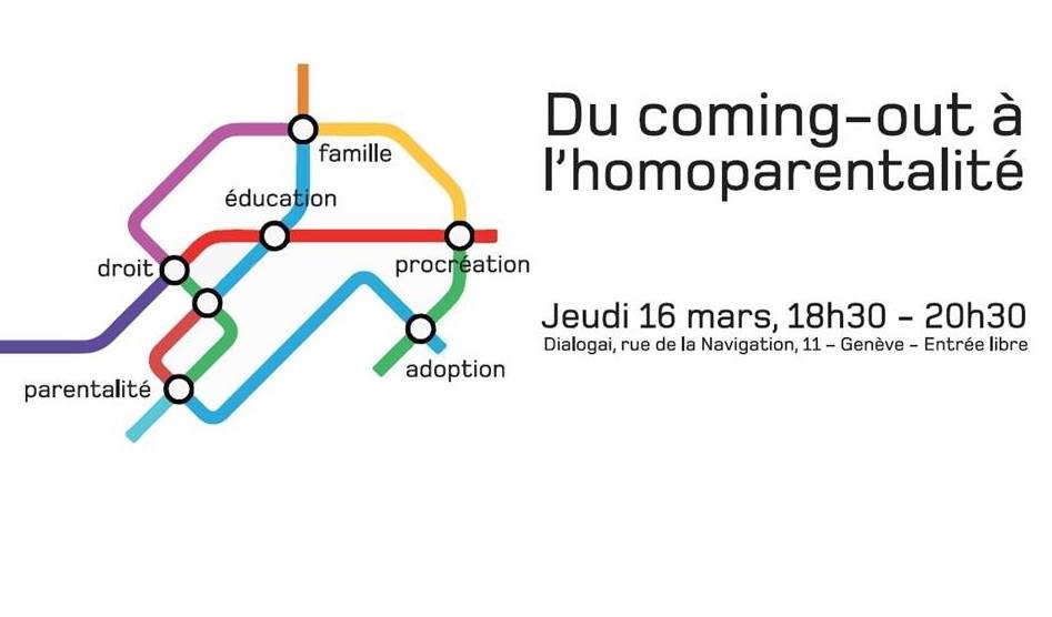 Jeudi 16 mars, l’Association Dialogai et le Groupe Homoparents de l’Association 360, en partenariat avec le Refuge Genève et Totem, vous invitent à une soirée de rencontre et de discussion autour de la thématique de l’homoparentalité et des familles arc-en-ciel.