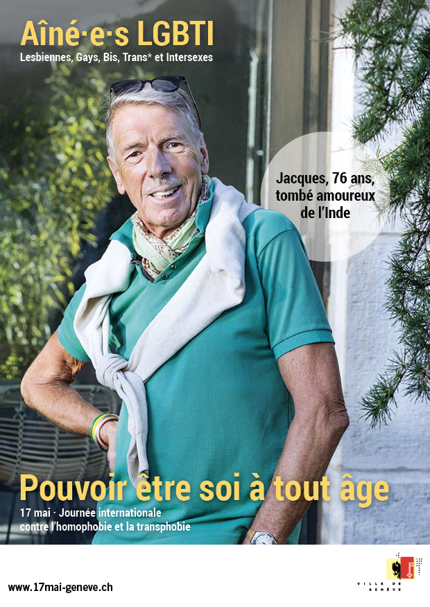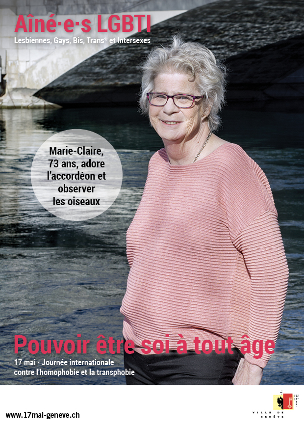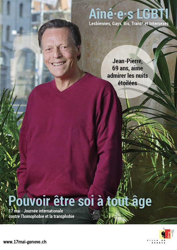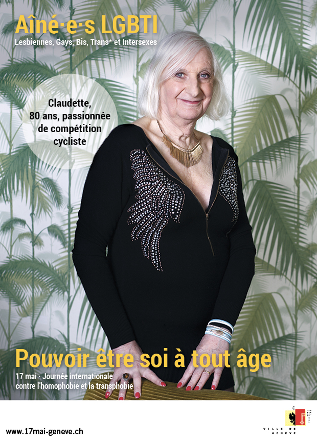 Du 9 au 30 mai, six portraits d’aîné-e-s LGBTI sont visibles dans les rues, les parcs et places de Genève. Âgées de 58 à 80 ans, ces personnes représentent, dans la singularité de leur parcours, la diversité des aîné-e-s LGBTI, la complexité de leurs besoins spécifiques, la multiplicité de leurs craintes vis-à-vis de la vieillesse, mais aussi leur engagement, leur dynamisme et leur amour de la vie.