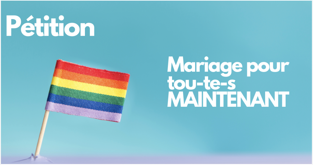 Pour toutes ces raisons, nous demandons aux élu-e-s d’adopter le projet de loi pendant la session d’hiver et de donner ainsi aux couples de même sexe et aux enfants des familles arc-en-ciel les droits qu’ils méritent !