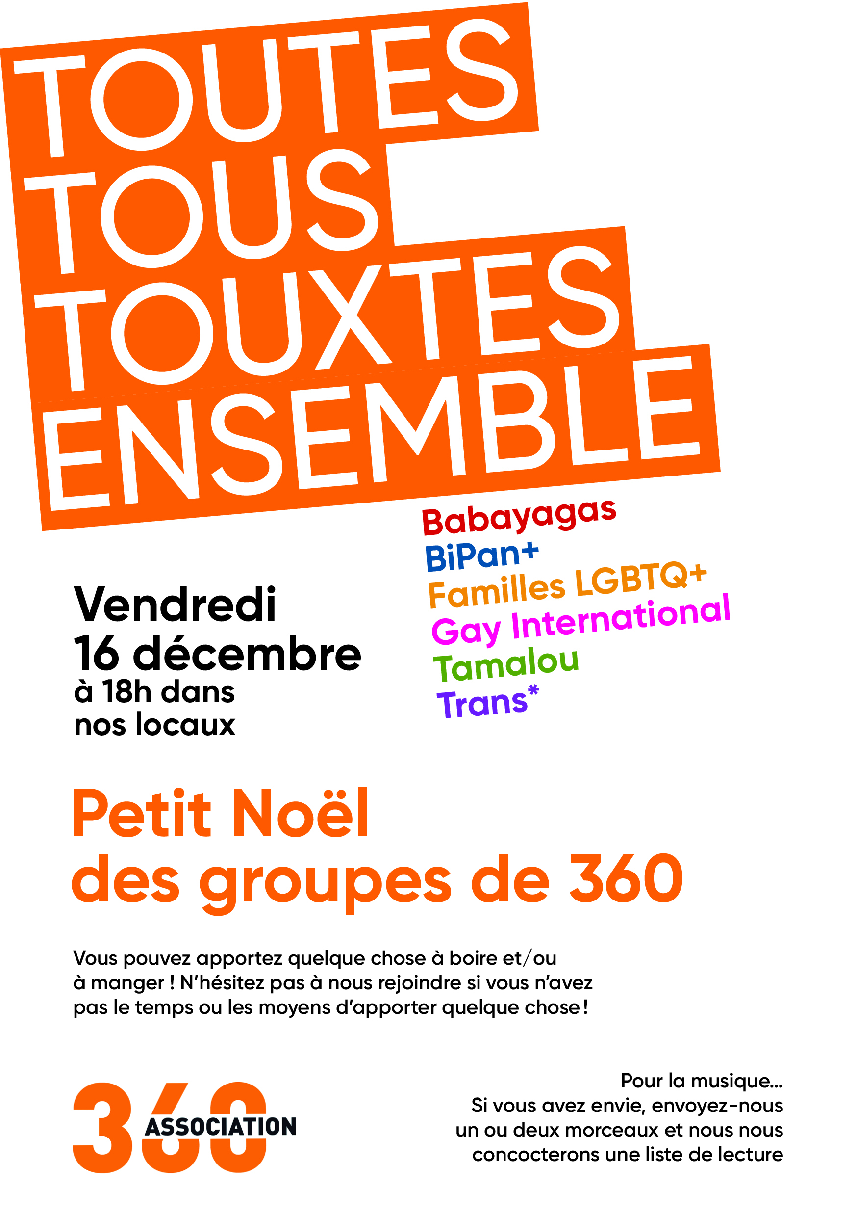 Petit Noël du Groupe BiPan+ et des autres Groupes de 360 – Toutes, tous, touxtes ensemble 16 décembre 2022 by Chatty Quand 16.12.2022 18h00 Add To Calendar Download ICS Google Calendar iCalendar Office 365 Outlook Live