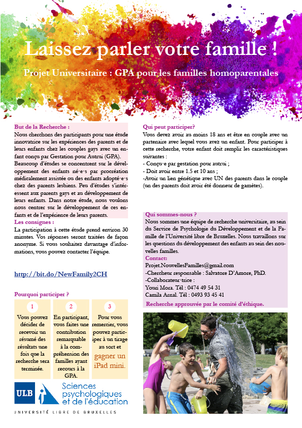 Appel pour projet universitaire: GPA pour les familles homoparentales 29 octobre 2018 by Chatty Télécharger le flyer ici