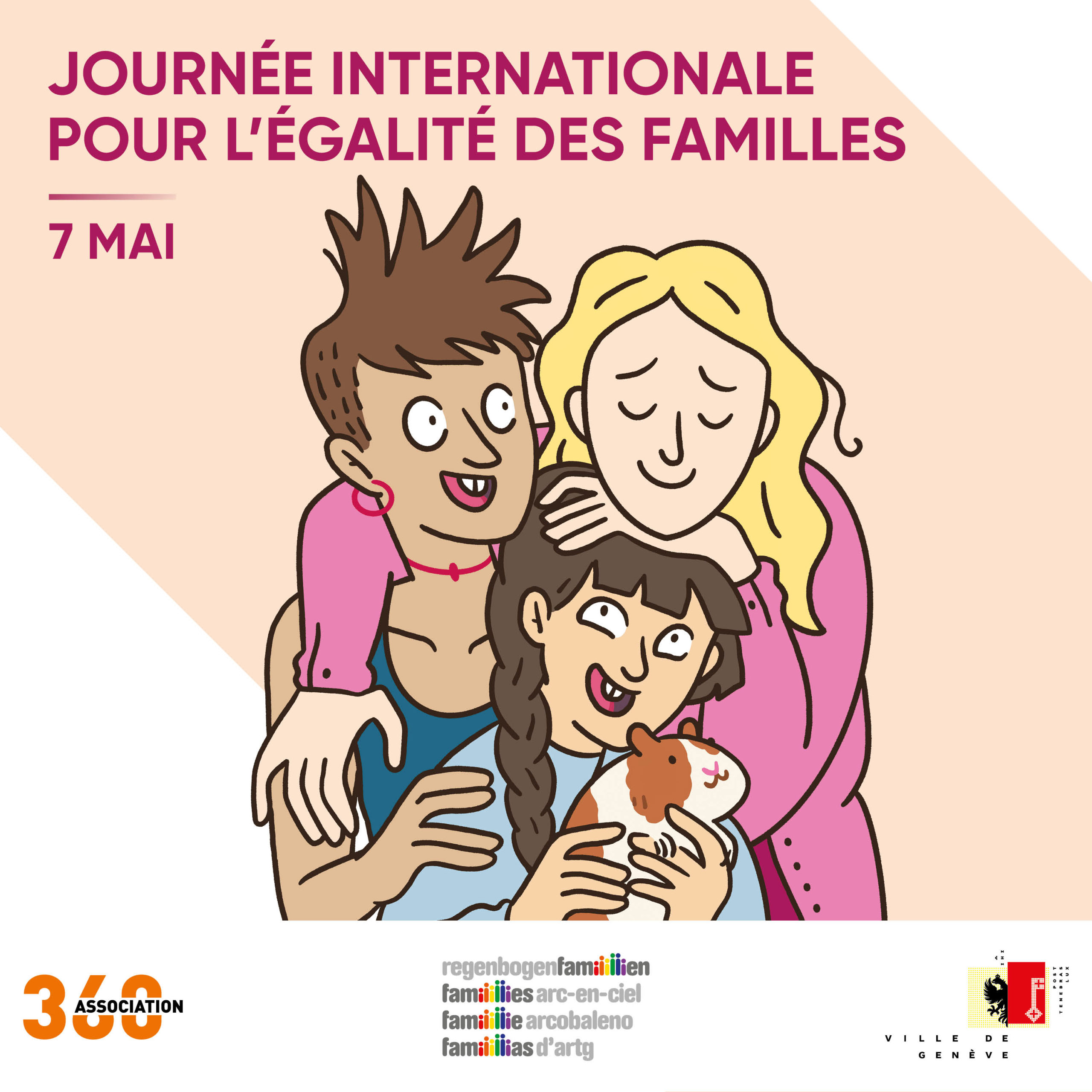 À l’occasion de la Journée internationale pour l’égalité des familles du 7 mai – ou International Family Equality Day, dont le mot d’ordre 2023 est « Power Up Families! » – la Ville de Genève, l’Association faitière Familles arc-en-ciel et le Pôle Familles LGBTQ+ de l’Association 360, organisent une journée de rencontres et d’activités à l’intention des enfants et familles. Des ateliers créatifs, du dessin, des lectures et diverses animations vous attendent pour cette journée de célébration qui offre l’occasion aux familles arc-en-ciel de se rencontrer et d’échanger, mais aussi de se rendre visibles et de revendiquer l’égalité des droits.