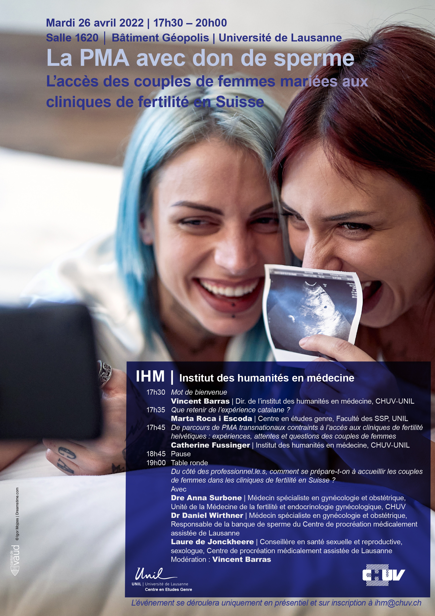 La PMA avec don de sperme: accès des couples de femmes – Conférence – Table-ronde – Mardi 26 avril 2022 26 avril 2022 by Chatty Quand 26.04.2022 17h30 - 20h00 Add To Calendar Download ICS Google Calendar iCalendar Office 365 Outlook Live