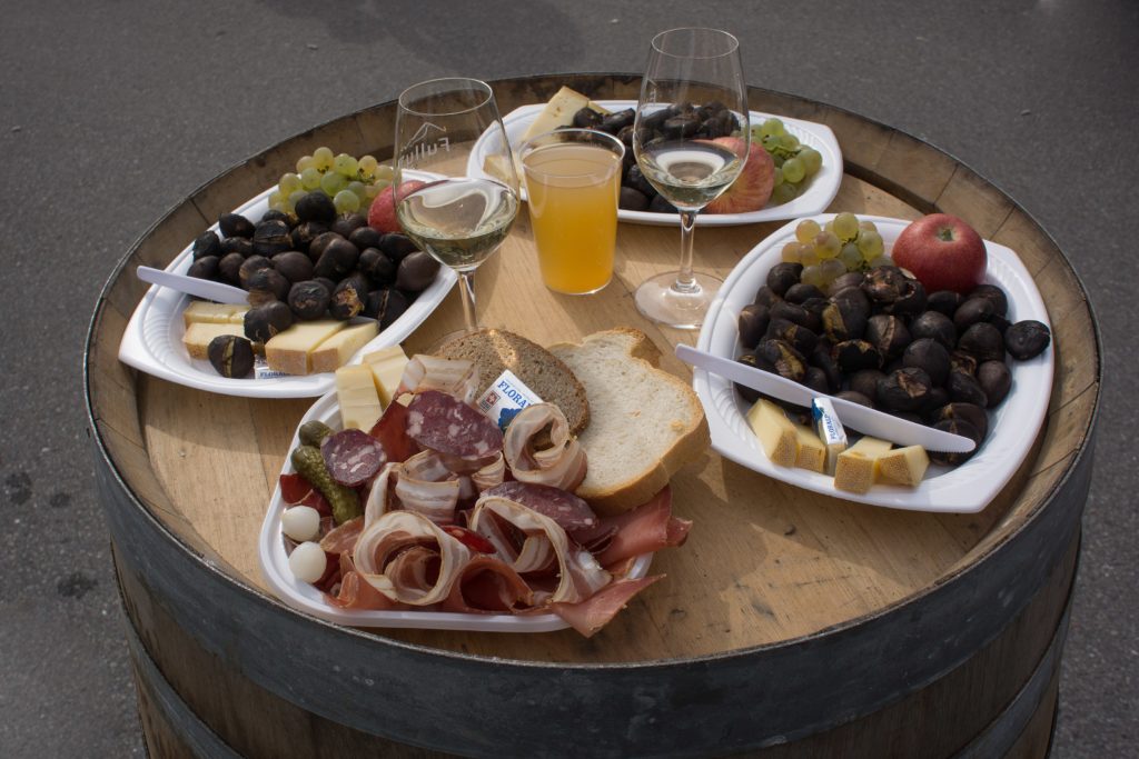 au restaurant Plan-Cerisier à Martigny-Croix / VS pour la brisolée. (repas traditionnel de châtaignes accompagnées de fromage et charcuterie).