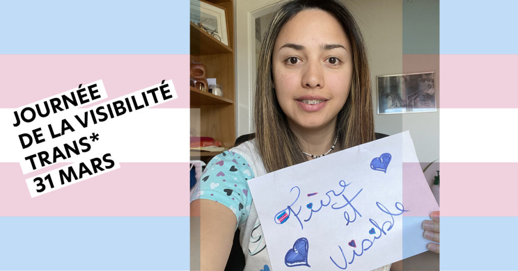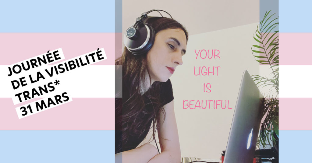 La visibilité trans*, pour moi, c’est montrer que les personnes trans*, les personnes non-binaires et les personnes de genre non-conforme existent, c’est montrer les difficultés que peuvent rencontrer ces personnes, c’est également une manière de réduire la solitude que peuvent ressentir ces personnes.