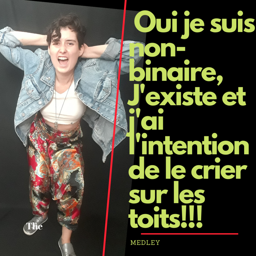 3- Pour moi personnellement, ça veut dire pouvoir aller au travail et parler ouvertement aux enfants de ma non-binarité. (Ce que je fais). Ne pas avoir peur de corriger les gens lorsqu’iels me mégenre (ce que je souhaiterais pouvoir faire). Et surtout normaliser notre existence. Nous sommes là, nous existons, ce n’est pas nouveaux et on ne va pas se taire ou disparaître. Arriver au stade où tout le monde se présente en utilisant son prénom et son pronom.